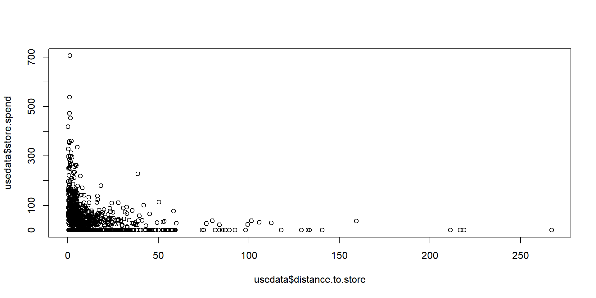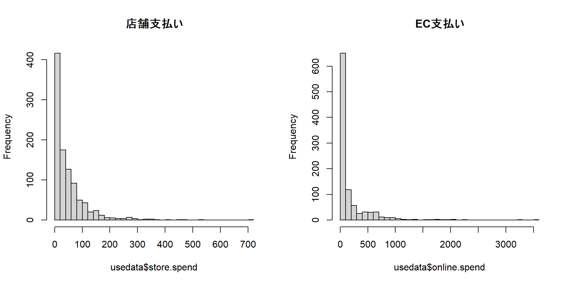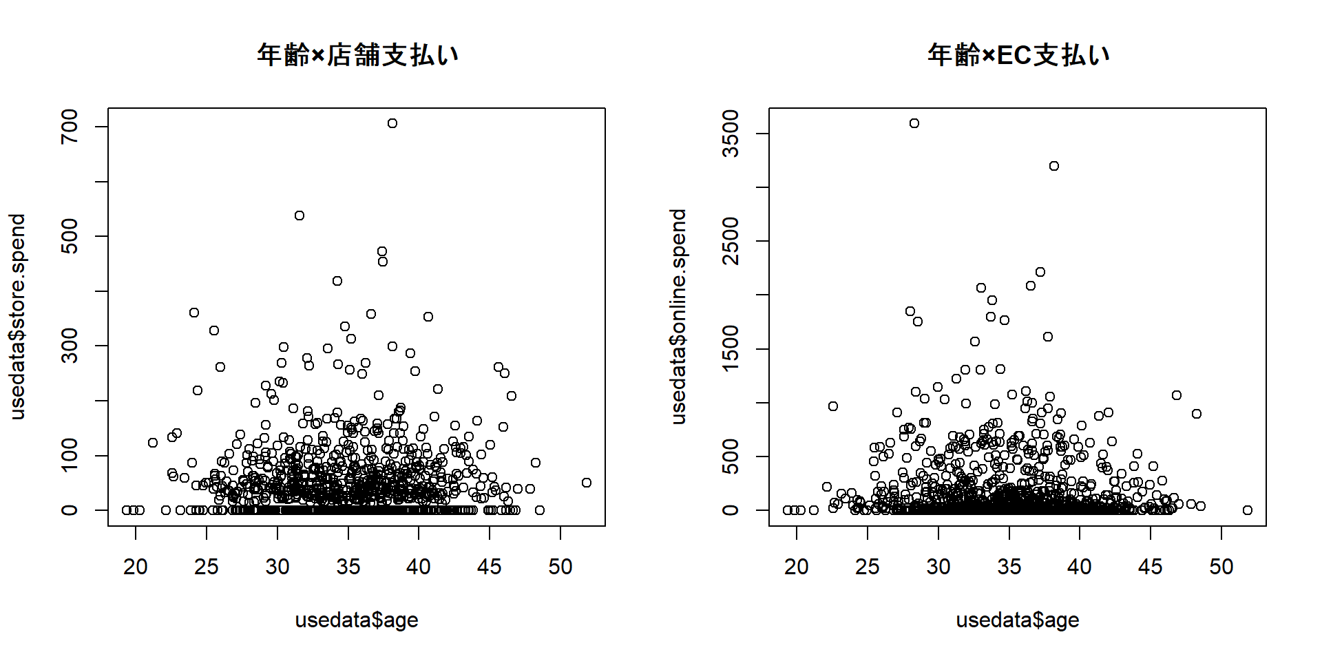 head(usedata, n = 5) # 先頭5行だけ見る cust.id age credit.score email distance.to.store online.visits
